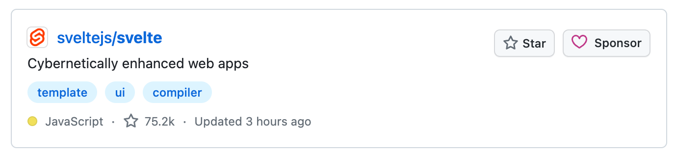 在risingstars的2023年报告上。可以看到Svelte在Github上星数上涨在前端框架中排名第三。
