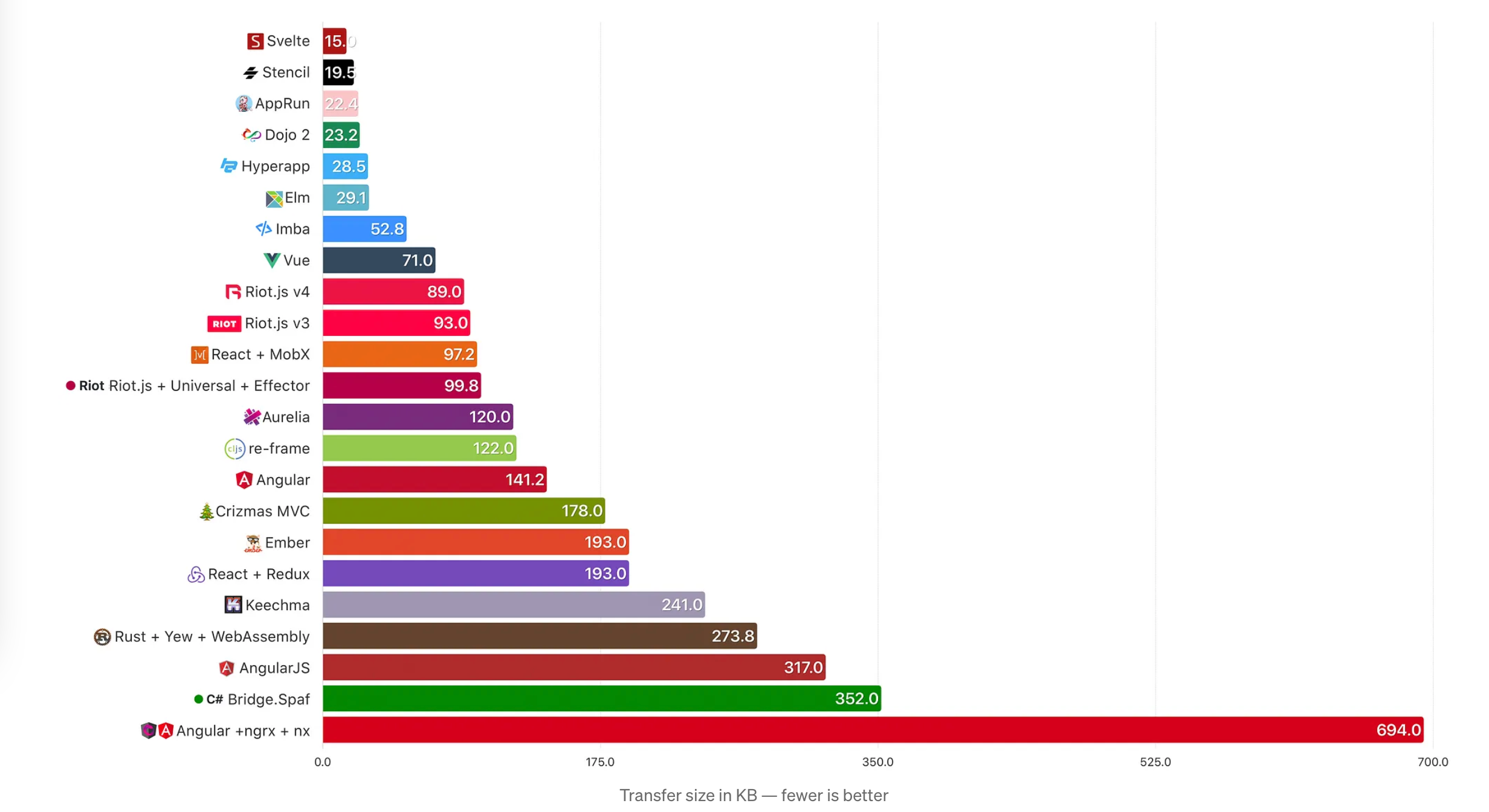 同样是Jacek Schae的框架体积分析。Svelte在这块内容中遥遥领先。