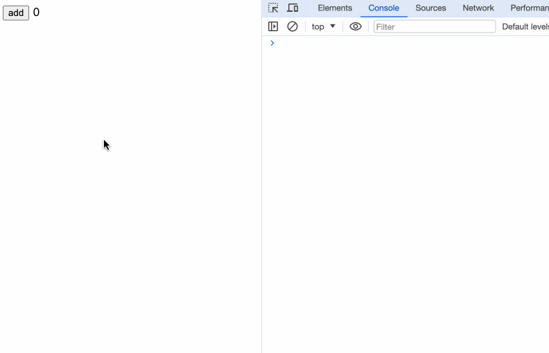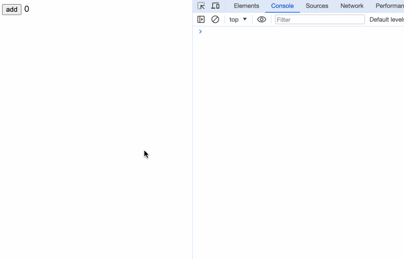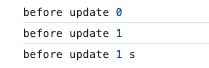 加载页面后,我们会首先看到控制台打印出before update 0。点击按钮更新,看到打印出before update 1,1s后看到打印出before update 1 s。