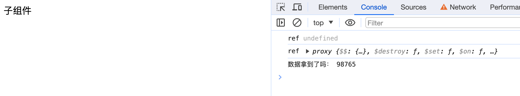 此时我们外部引用这个组件,并打印出这个组件的实例