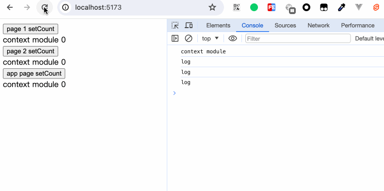 <button on:click={() => setCount(2)}>page 1 setCount</button> <Context />