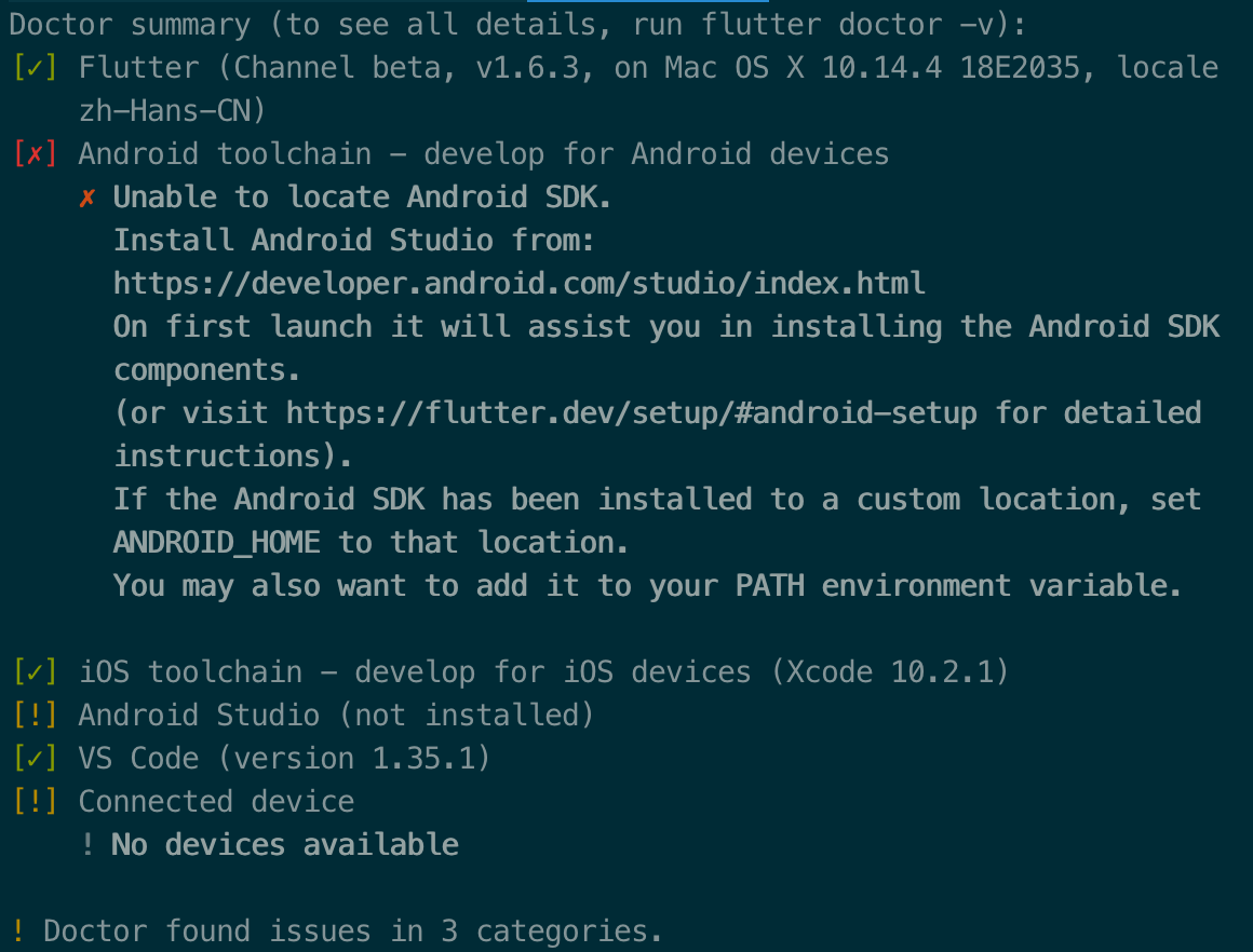 如果安装成功,应该是可以正常执行该命令的。但我在执行 flutter doctor 时,发现一直报错。