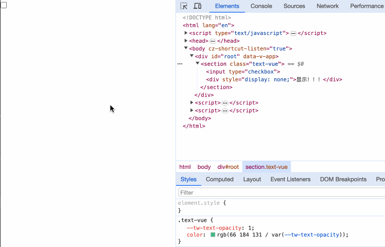 <div v-show="checked">显示!!!</div>