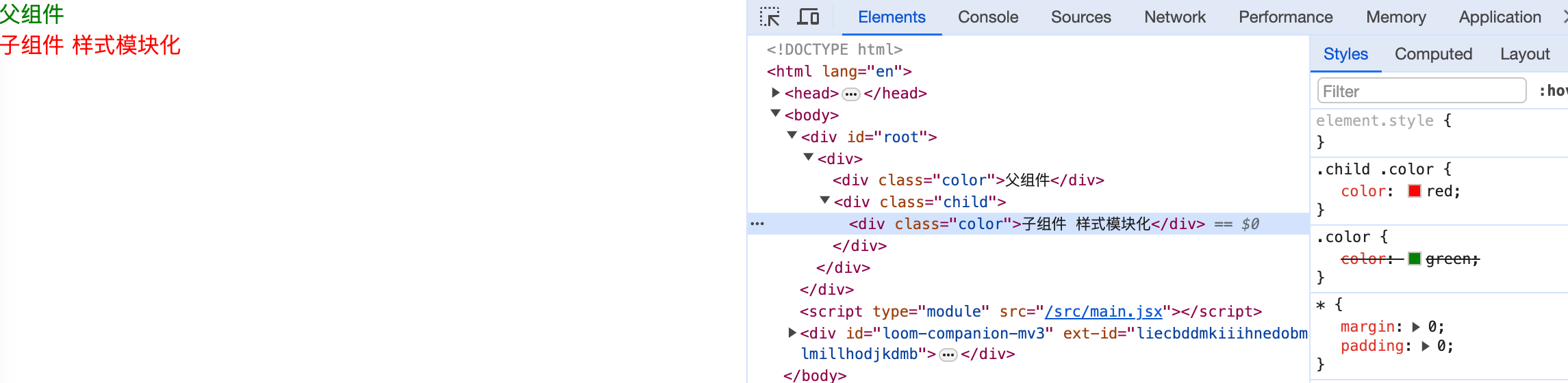 <div className="color">子组件 样式模块化</div>