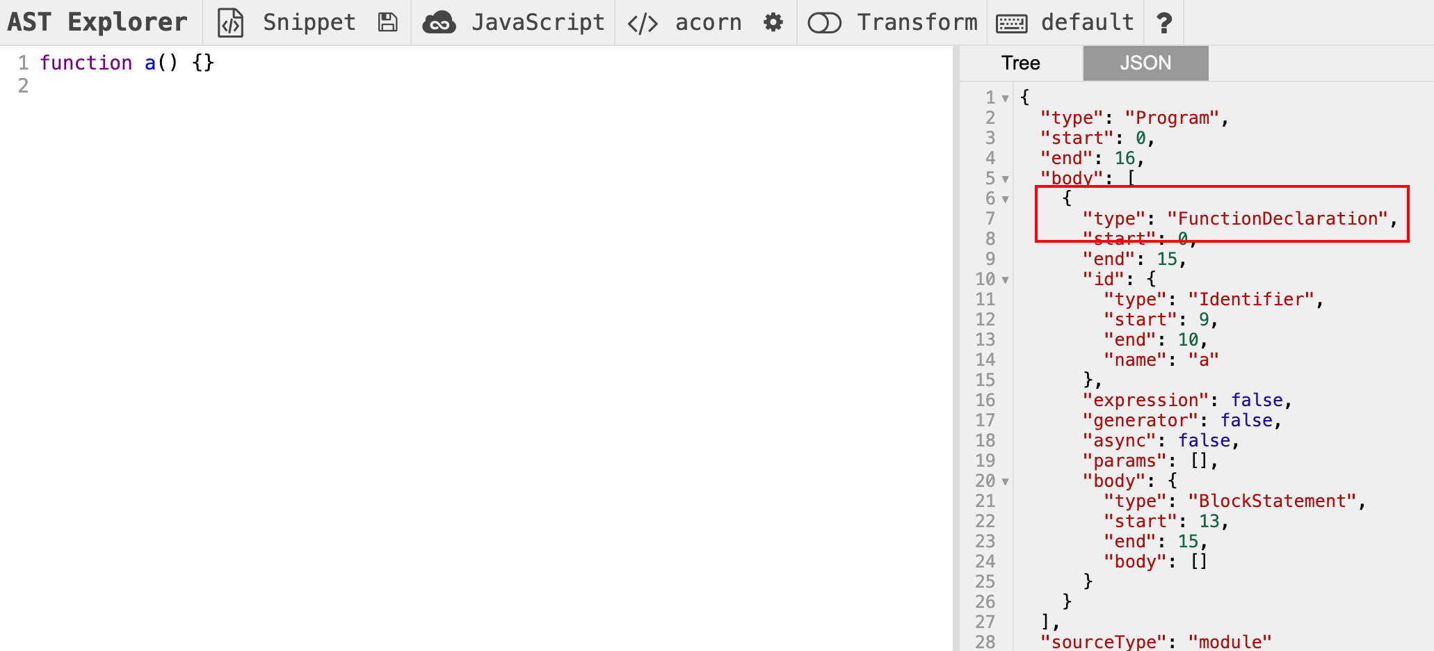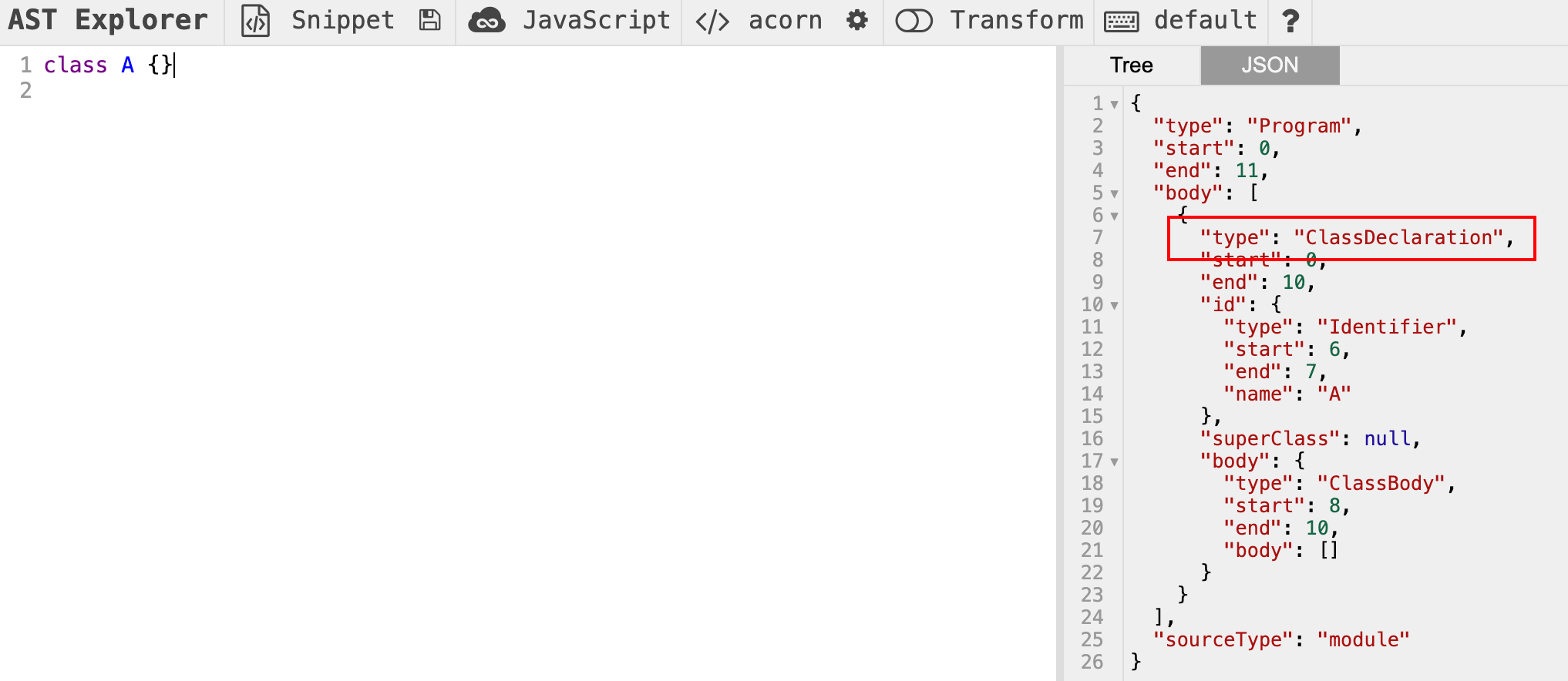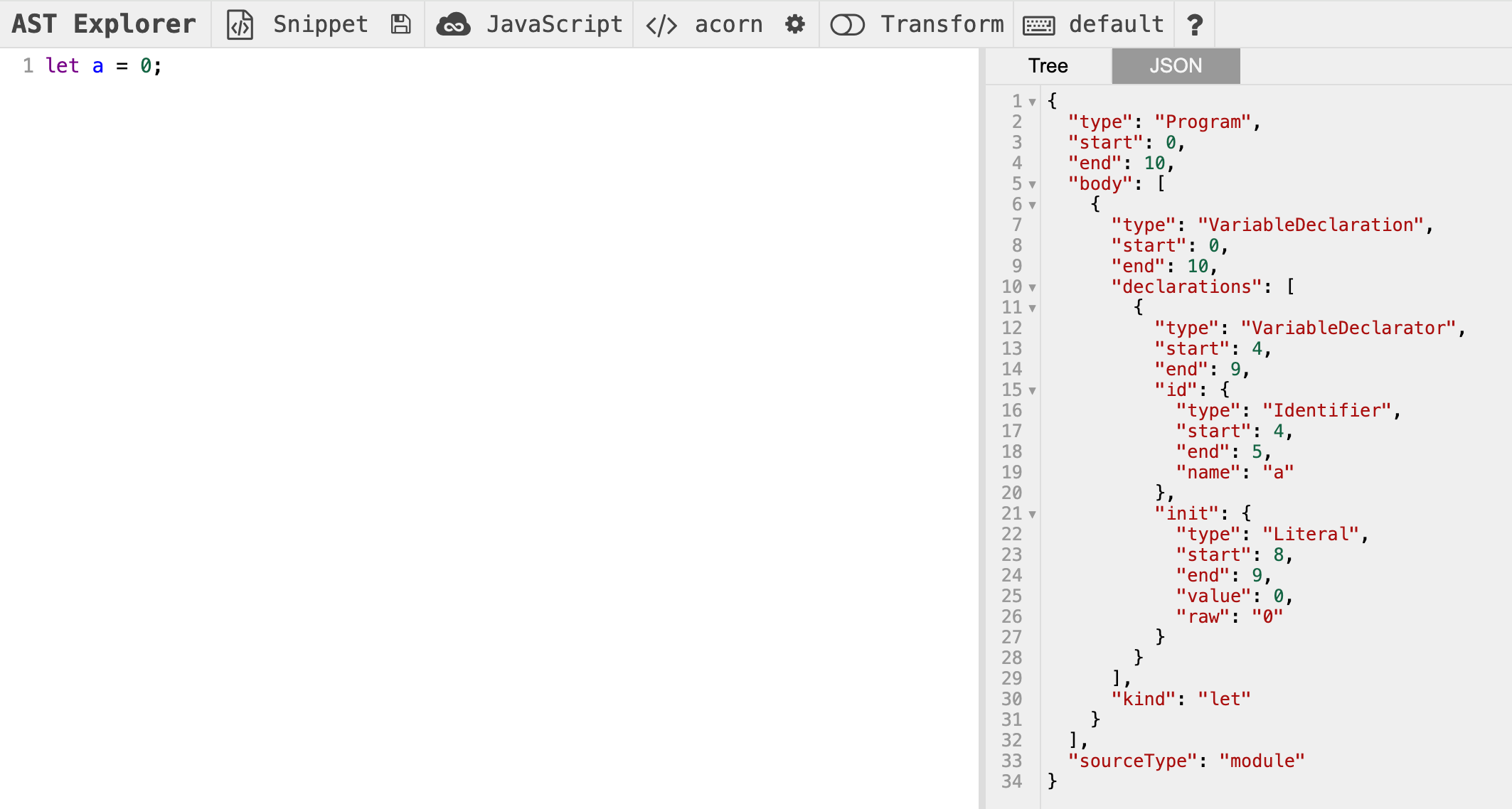 在astexplorer中,我们能够试验各种ast工具对源码的抽象。