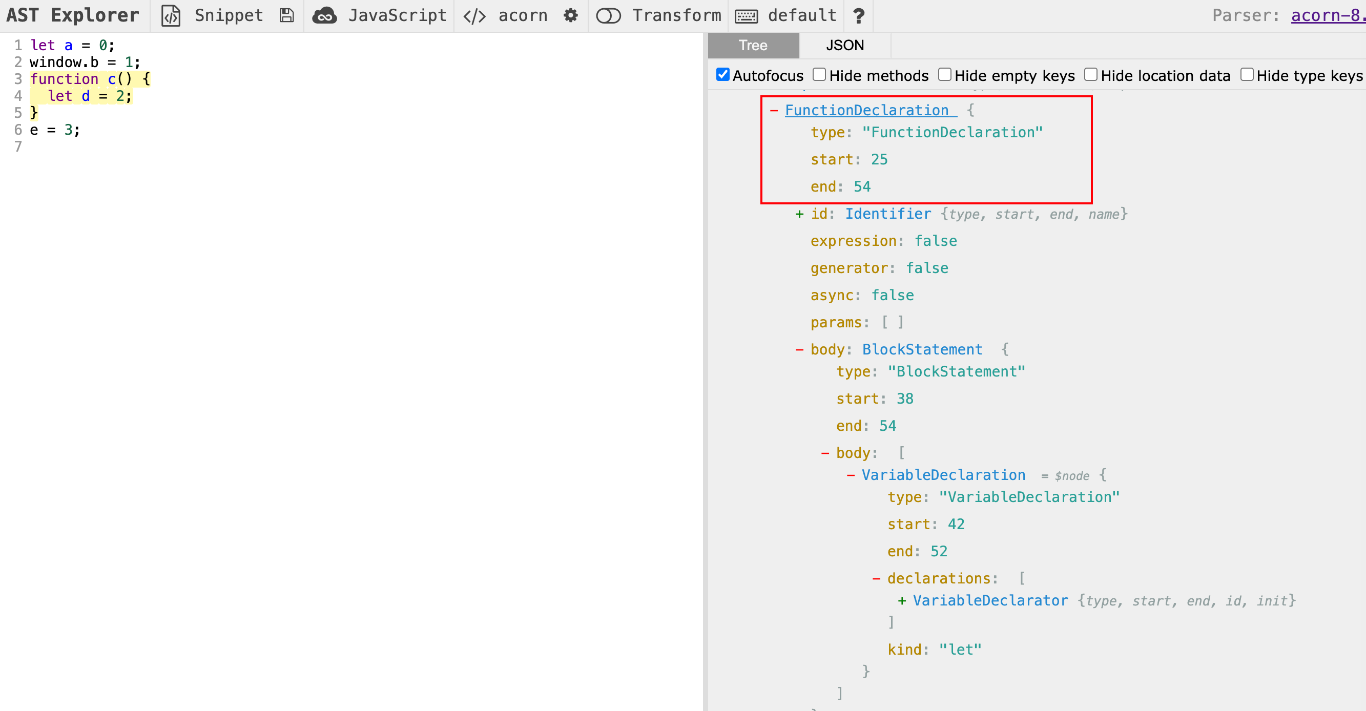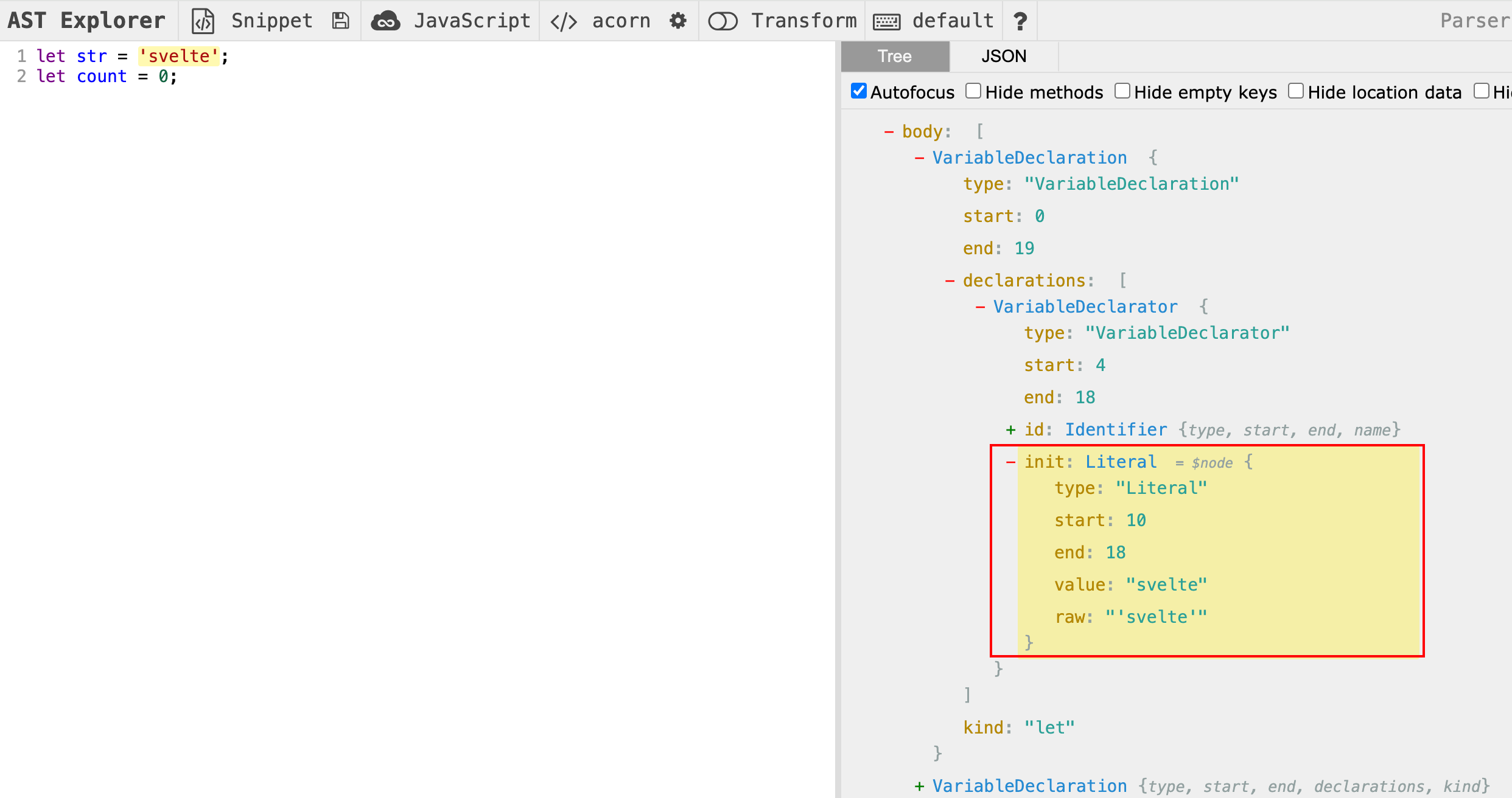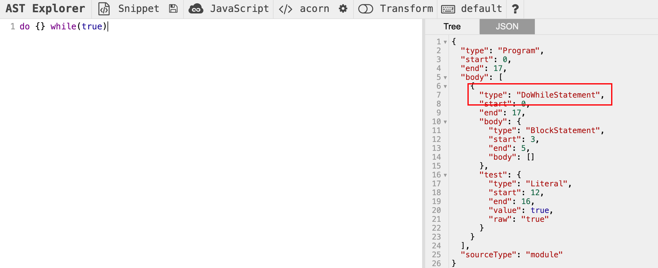 在astexplorer中,我们能够试验各种ast工具对源码的抽象。