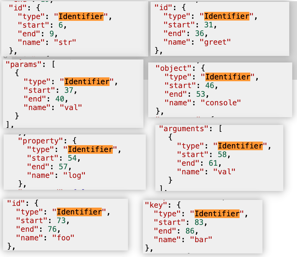 就拿这一小段代码来说,它的Identifier类型节点就将近十个: