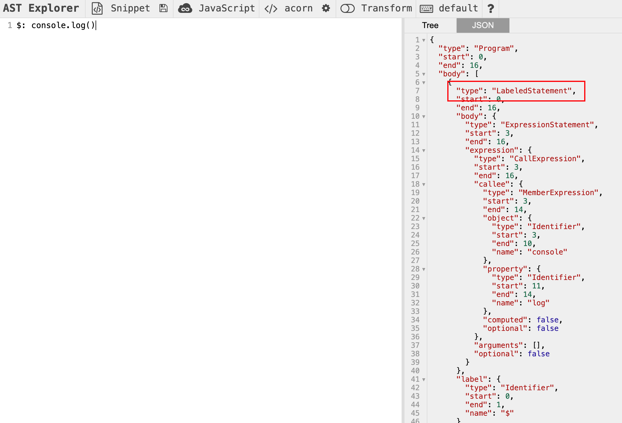 $:xxx是LabeledStatement。Svelte中的反应性的监听,巧妙地运用了这个语句。