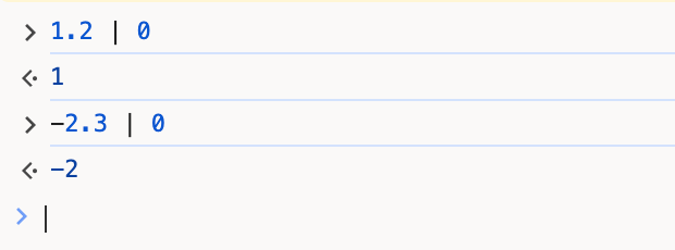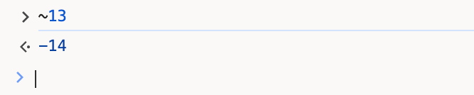 首先我们将13转成补码,经过补码的按位非之后,我们得到另一组补码,将这组补码转成原码,再将得到的原码转成十进制数。我们能得到~13 == -14,我们可以在浏览器控制台上简单验证: