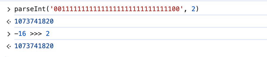 11111111 11111111 11111111 11110000 补码 >> 2