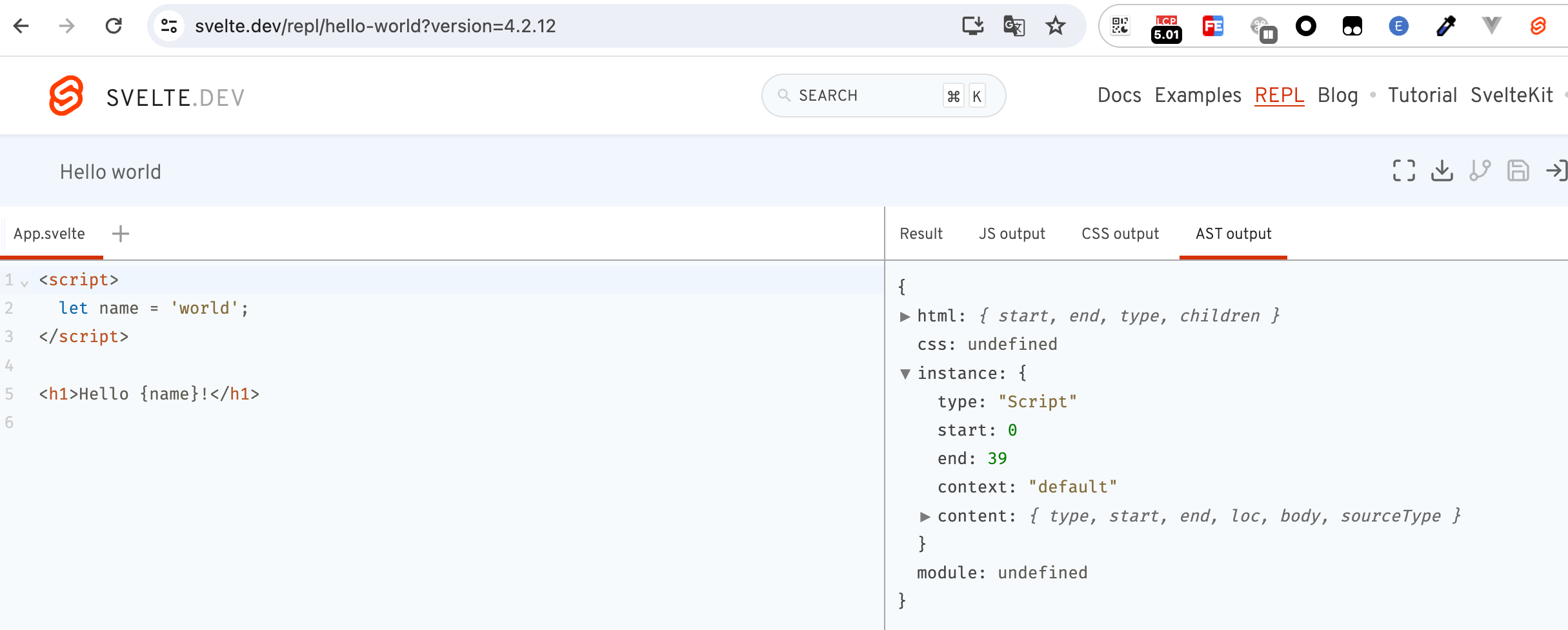 我们在REPL中可以看到,AST的输出结构正是上述的返回对象。