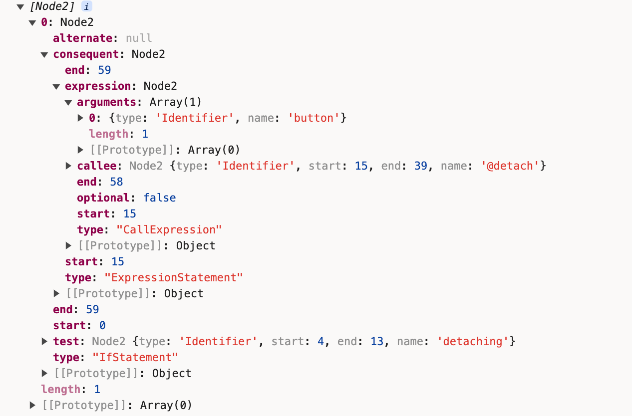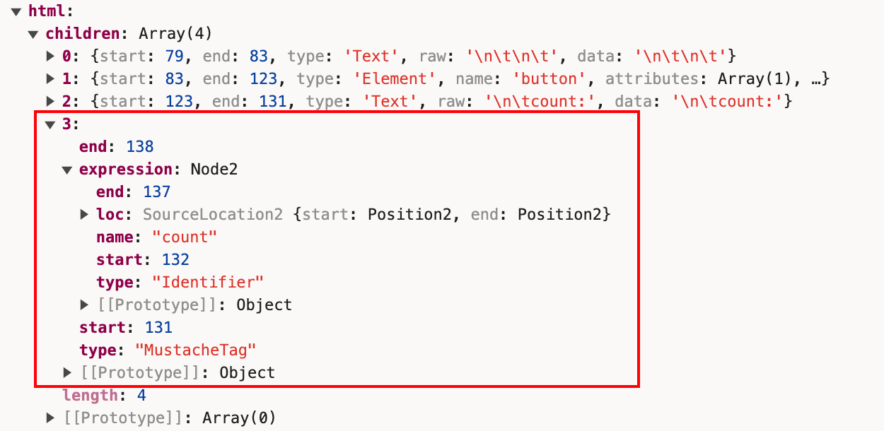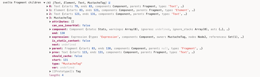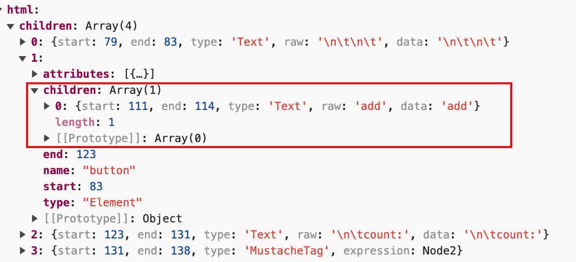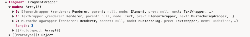Parser内部则通过四种不同的类型的节点解析器,分别是fragment、tag、mustache和text。通过遍历文件的字符串内容,轮流调用这几个方法。