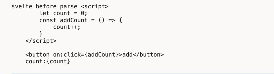 首先Svelte文件经过预处理,比如像要添加typescript支持等,然后调用compile,最后返回js.code。