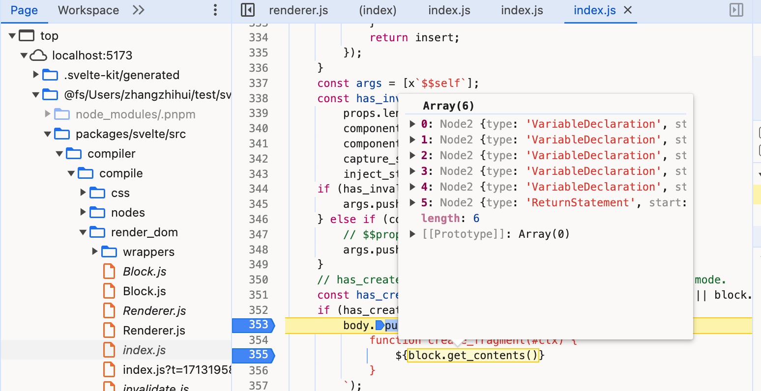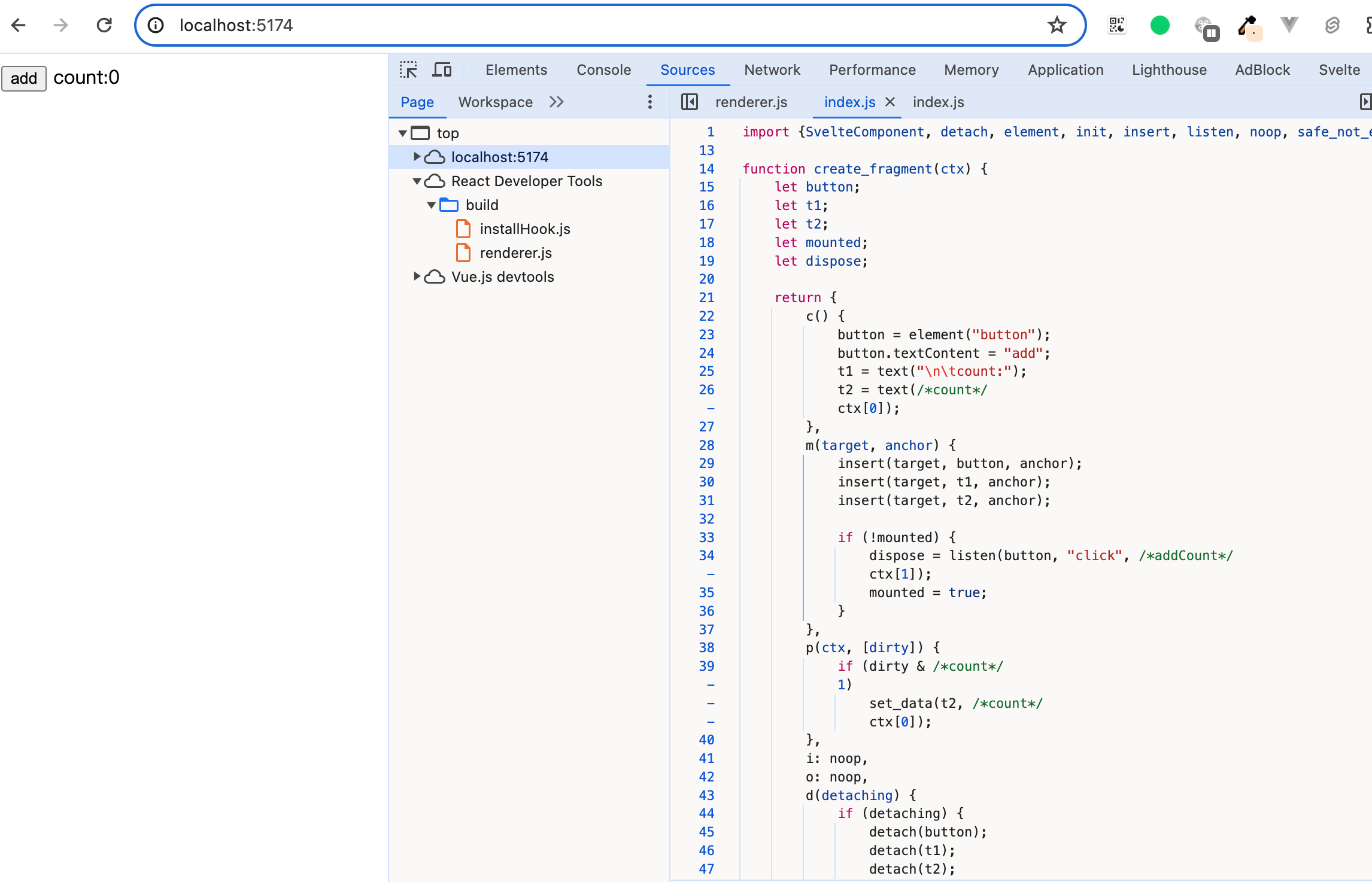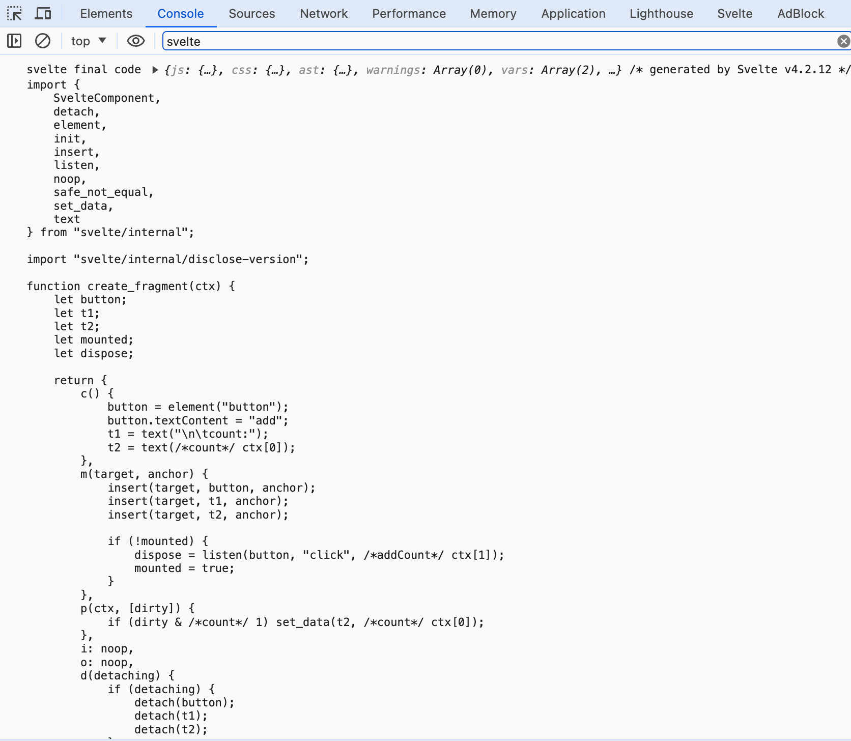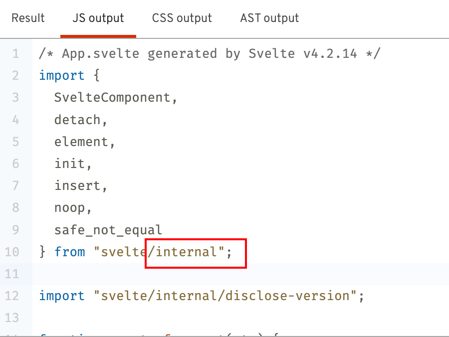 为了简单直观地查看到各个阶段的执行结果,我们在网站首页sites/svelte.dev/src/routes/+layout.svelte直接引入svelte编译器文件: