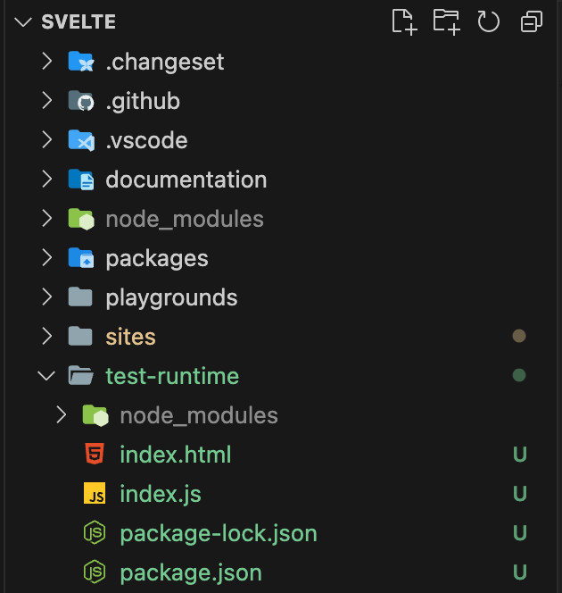 在svelte源码项目目录下新建一个目录叫test-runtime,新建一个index.html: