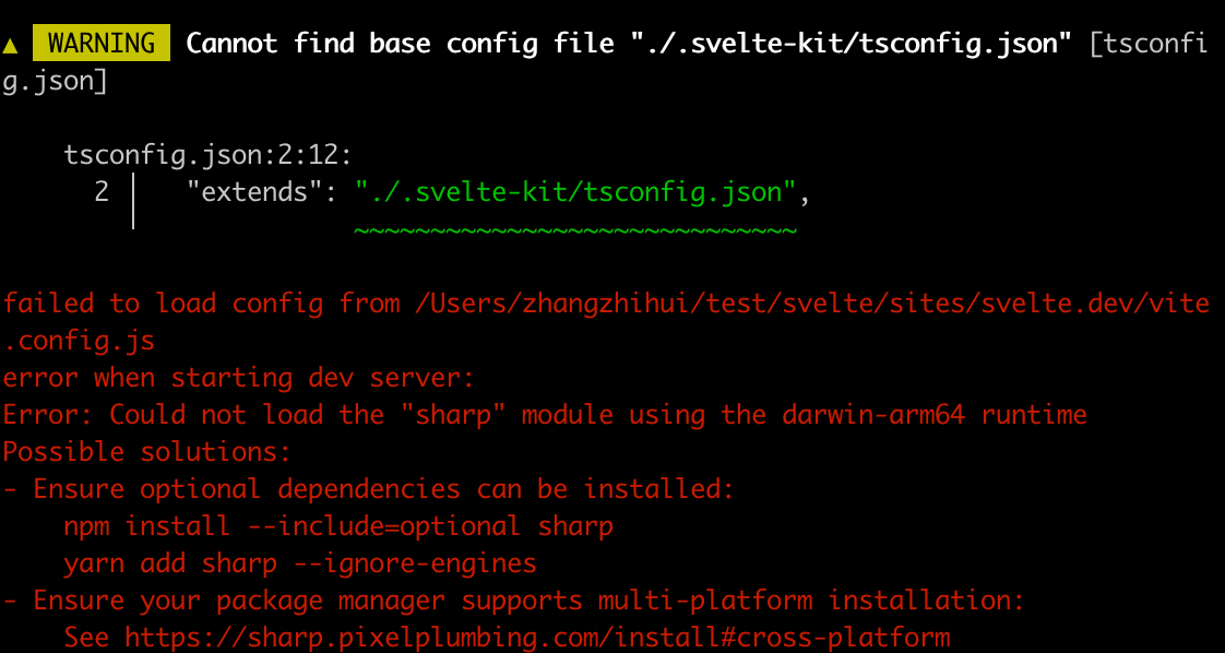 这是因为svelte.dev下缺少了一个.svelte-kit目录。