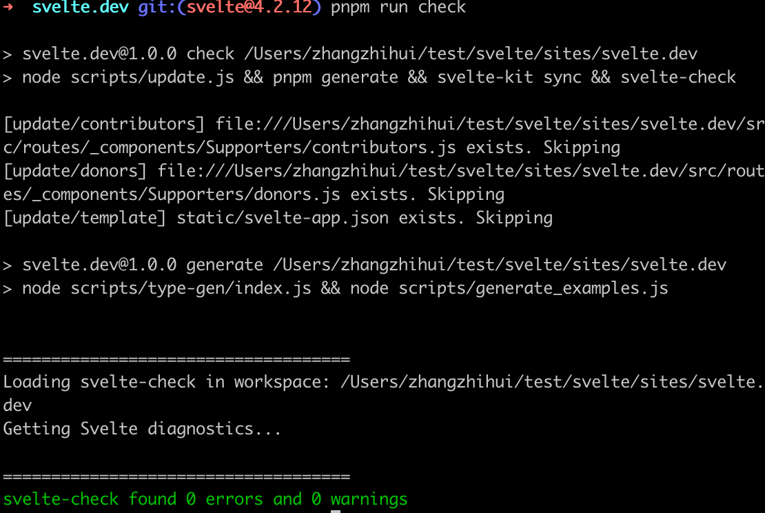 进入到网站目录cd sites/svelte.dev,执行pnpm run dev把网站跑起来,在控制台中查看打印结果: