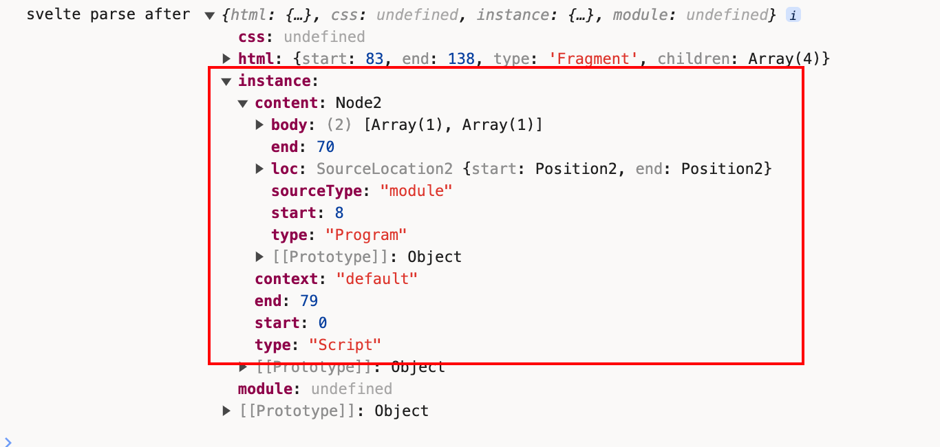 开始解析我们的Svelte文件内容,最开始解析<script>...的最左侧<,符合tag的解析。