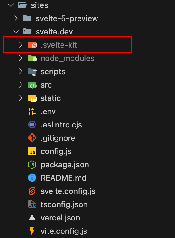 现在我们看到svelte.dev下已经有了.svelte-kit目录。